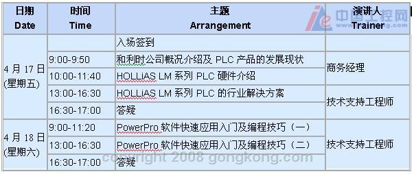 2008年4月和利時杭州“LM系列PLC技術培訓”通知