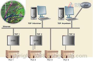 XTOP 觸摸屏是韓國M2I公司新推出的高功能系列產品, 該系列XTOP除有3個串口外還可以通過自帶以太網口(100M)、USB接口、無限擴充的CF卡接口進行高速下載、上載程序、報警和配方等信息,該屏擁有超大的視角范圍,高達1024*768的分辨率可以顯示更多的信息;擁有三個USB接口(前面板1個USB Device 后面板1個USB Device 1個USB Host)和高達12MB的自帶內存;可以通過以太網(圖2)實現遠程監測和監制、實時報警監控、1:N傳送、屏與屏之間實現數據共享、收集日志、報警等信息并建立日報,可支持用戶自定義報告格式(MSWord、Excel)也可結合其他系統(ERP、Groupware)輸出( Excel、XML、TEXT)。