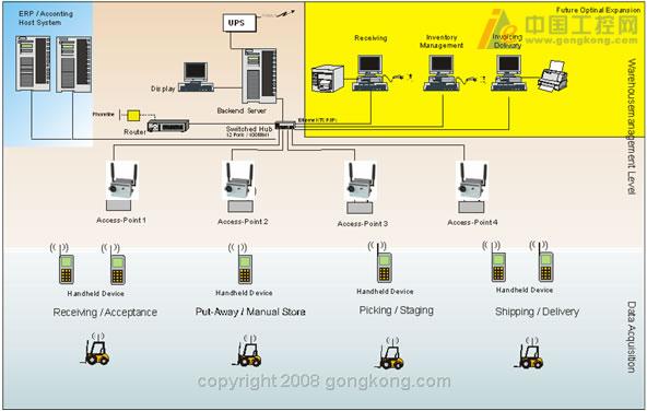 現場操作人員可以使用PDA或帶網卡的筆記本來實時進入物流配送網絡,監控庫存,并對運輸環節發出指令,遠程控制RGV或AGV小車將貨物運送到某個貨庫或貨架中。