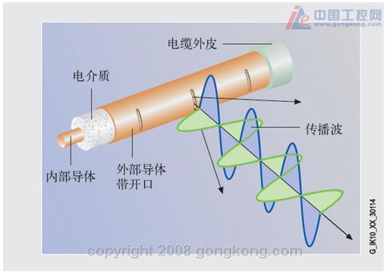 RCOAX饋線系統(tǒng)的主體是漏波電纜 ,它借鑒了標準饋線傳輸信號損耗小的優(yōu)點,以及2-5GHz信號的衍射特性而設計的一種線狀天線,區(qū)別于通常的桿狀或 面狀天線。機構設計上遵循2.4G 或5G的衍射原理將特定的饋線等距離的開出一列漏波孔。射頻信號通過漏波孔向外輻射。 這種天線可以很好的規(guī)避障礙物的屏蔽作用,將射頻信號隨著電纜的敷設位置而向外延伸,單節(jié)最長可達200M的敷設距離。RCOAX饋線系統(tǒng)可以像滑觸線一樣隨著軌道的彎轉而敷設,也可以像紅外線一樣非接觸無線通訊。