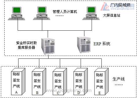 ⑷全廠的管理人員獲得授權情況下,在辦公室的個人PC機上可通過局域網瀏覽器查看實時生產情況、并結合ERP系統顯示各條生產線上當班工人信息和各條生產線上實時生產信息、查詢歷史信息和報表。