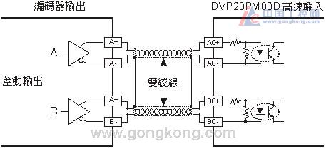 一般I/O點配線就不再贅言了,可以關注一下PLC比較少用到的差分輸入輸出方式,在信號中有一部分是這樣的,一定要注意否則將不能正確完成,參見圖2、圖3。