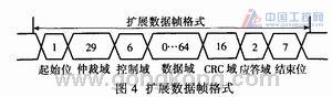對(duì)于n 部電梯,則有n 個(gè)輸出值Y1 ,Y2 ,. . . . . . , Yn , 而最終系統(tǒng)選擇max(y i) { i = 1 , 2 , . . . . . . , n} 作為輸出,即選派此電梯來(lái)響應(yīng)召喚。選擇各個(gè)參量相應(yīng)的隸屬度函數(shù)和輸出參量的隸屬度函數(shù)及相應(yīng)的權(quán)值,經(jīng)過(guò)模糊算法即可實(shí)現(xiàn)電梯的調(diào)度。 4. 2 CAN通訊的實(shí)現(xiàn) CAN 是一種新型的總線式串行通信網(wǎng)絡(luò),具有突出的實(shí)時(shí)性、靈活性和可靠性等優(yōu)點(diǎn), 可以很好地解決通訊問(wèn)題。CAN通信具有如下的特點(diǎn):CAN網(wǎng)絡(luò)上的任一節(jié)點(diǎn)均可在任意時(shí)刻發(fā)送信息,同時(shí)接收總線上的信息,無(wú)主從之分; 網(wǎng)絡(luò)上的節(jié)點(diǎn)信息分成不同的優(yōu)先級(jí),可滿足不同的實(shí)時(shí)要求, 當(dāng)多點(diǎn)同時(shí)向總線發(fā)送報(bào)文時(shí),優(yōu)先級(jí)較低的節(jié)點(diǎn)會(huì)主動(dòng)退出發(fā)送,而優(yōu)先級(jí)高的節(jié)點(diǎn)可以不受影響地繼續(xù)發(fā)送數(shù)據(jù),大大節(jié)省了總線沖突仲裁時(shí)間,增強(qiáng)了網(wǎng)絡(luò)的實(shí)時(shí)性; 采用短幀傳送, 每幀信息都有CRC校驗(yàn)及其他檢錯(cuò)校驗(yàn),可靠性高,直接通信能力可達(dá)最遠(yuǎn)10 km,速度可達(dá)1 Mbit/ s。可見(jiàn),由于CAN的多主結(jié)構(gòu)在實(shí)時(shí)性、靈活性、可靠性等方面具有的突出優(yōu)點(diǎn), 非常適合電梯呼梯信號(hào)的通信。 4. 2. 1 CAN接口設(shè)計(jì) 為了實(shí)現(xiàn)基于CAN的數(shù)據(jù)通信, 必須將各控制器的輸入、輸出轉(zhuǎn)化為CAN標(biāo)準(zhǔn)。由于微控制器本身都帶有兩個(gè)CAN模塊,因此只需選擇CAN收發(fā)器即可。CAN總線的收發(fā)器采用 TJA1040 ,它是完全符合ISO 11898標(biāo)準(zhǔn)的控制器局域網(wǎng)CAN協(xié)議控制器和物理總線之間的接口, 速度可達(dá)1Mbaud。它有優(yōu)秀的EMC性能,而且在不上電狀態(tài)下有理想的無(wú)源性能,它還提供低功耗管理,支持遠(yuǎn)程喚醒。C167CS上的CAN模塊通過(guò)一條串行數(shù)據(jù)輸出線(CAN- TxD)和一條串行數(shù)據(jù)輸入線(CAN-RxD) 連接到收發(fā)器。而收發(fā)器則通過(guò)它的兩個(gè)有差動(dòng)接收和發(fā)送能力的總線終端CANH和CANL連接到總線線路, 收發(fā)器使用5 V的額定電源電壓。 4. 2. 2 幀格式的形式 CAN的實(shí)際通信是由硬件來(lái)自動(dòng)實(shí)施的,硬件是按信息幀格式(主要有數(shù)據(jù)信息幀和遠(yuǎn)程信息幀) 來(lái)傳遞數(shù)據(jù)的。總線傳送數(shù)據(jù)按信息幀來(lái)傳送, 幀與幀之間由3個(gè)分離位來(lái)分離, 沒(méi)有信息幀時(shí),總線則處于空閑時(shí)間。數(shù)據(jù)信息幀的格式如圖4 所示(擴(kuò)展模式) 。