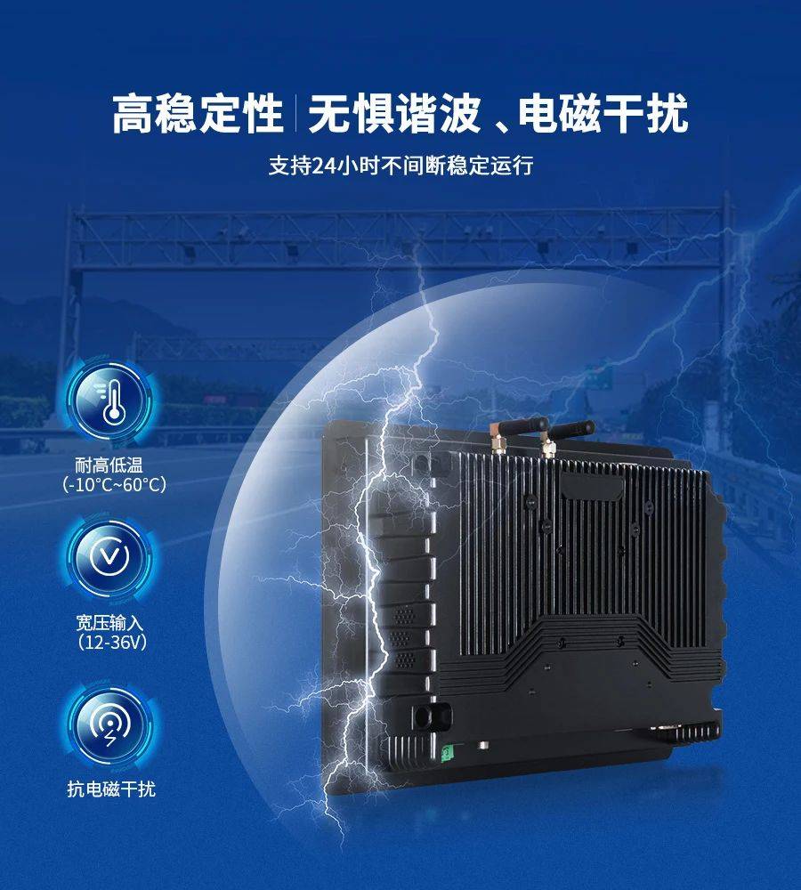 隨著智能化、自動化的智慧交通發展,高速公路供配電機房大多趨于無人化管理。觸想TPC101-W10可保證在寬溫寬壓環境運行,并通過EMI/ESD檢測,有效抵御諧波、電磁、靜電干擾,配備過壓過流、短路保護,支持24小時不間斷穩定運行,減少人工運維成本。