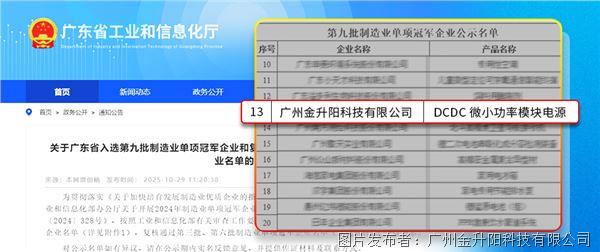 金升陽(yáng)獲批國(guó)家級(jí)制造業(yè)單項(xiàng)冠軍企業(yè),彰顯電源領(lǐng)域領(lǐng)航實(shí)力
