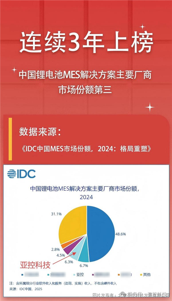 重磅丨亞控榮登2024中國鋰電池MES解決方案市場份額第三,持續引領鋰電行業數字化轉型