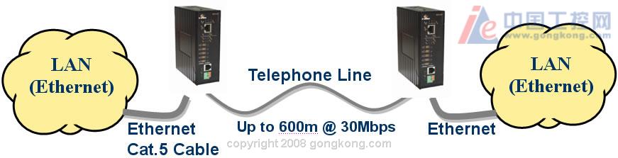 ED3141是點對點應(yīng)用現(xiàn)有電話線進行10/100M以太網(wǎng)絡(luò)擴展的DSL解決方案。在傳輸距離在1.9公里以內(nèi),無需增設(shè)線纜,可以直接使用現(xiàn)有的電話線EX3141,傳輸速率就可以達到30Mbps。在工廠中需要將速度緩慢的串口通訊設(shè)備升級至工業(yè)快速以太網(wǎng)的網(wǎng)絡(luò),應(yīng)用ED3141是一個完美的應(yīng)用方案,有效地節(jié)省網(wǎng)絡(luò)升級帶來的額外布線的成本。