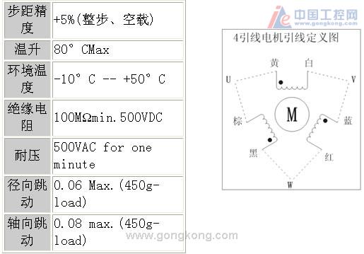 步距精度 +5%(整步、空載) 溫升 80°CMax 環(huán)境溫度 -10°C -- +50°C 絕緣電阻 100MΩmin.500VDC 耐壓 500VAC for one minute 徑向跳動(dòng) 0.06 Max.(450g-load) 軸向跳動(dòng) 0.08 max.(450g-load)