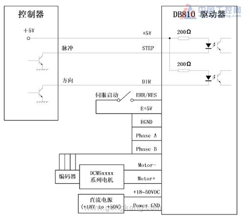 圖7 DB810驅(qū)動(dòng)器與DCM5xxxx系列電機(jī)的接線圖