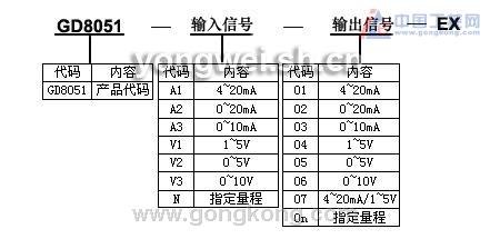 型號規(guī)格(代碼):代碼是指明信號輸入或輸出的量程范圍,用戶訂貨時可自由選定(見選型譜)。