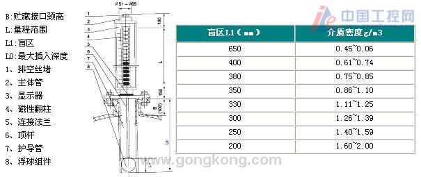 因測量時在結構上存在一定的盲區值,讀數時要補償,對不同的介質密度,浮球的長度是不一樣的,故盲區值也不一樣,見表