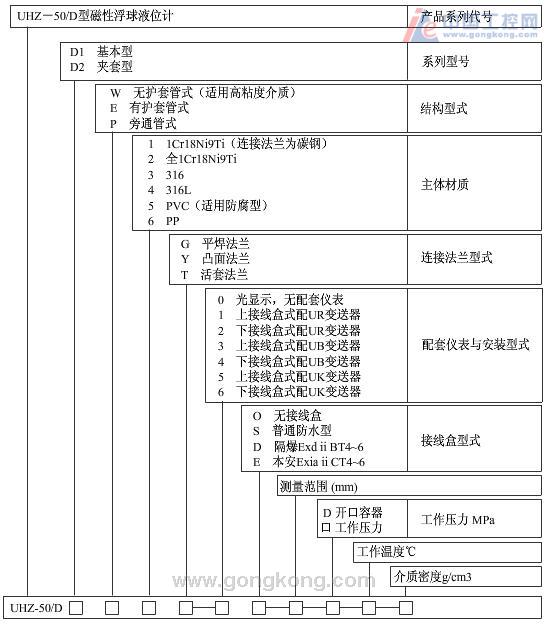 涌緯自控 UHZ-50/D型系列頂裝式磁性浮球液位計