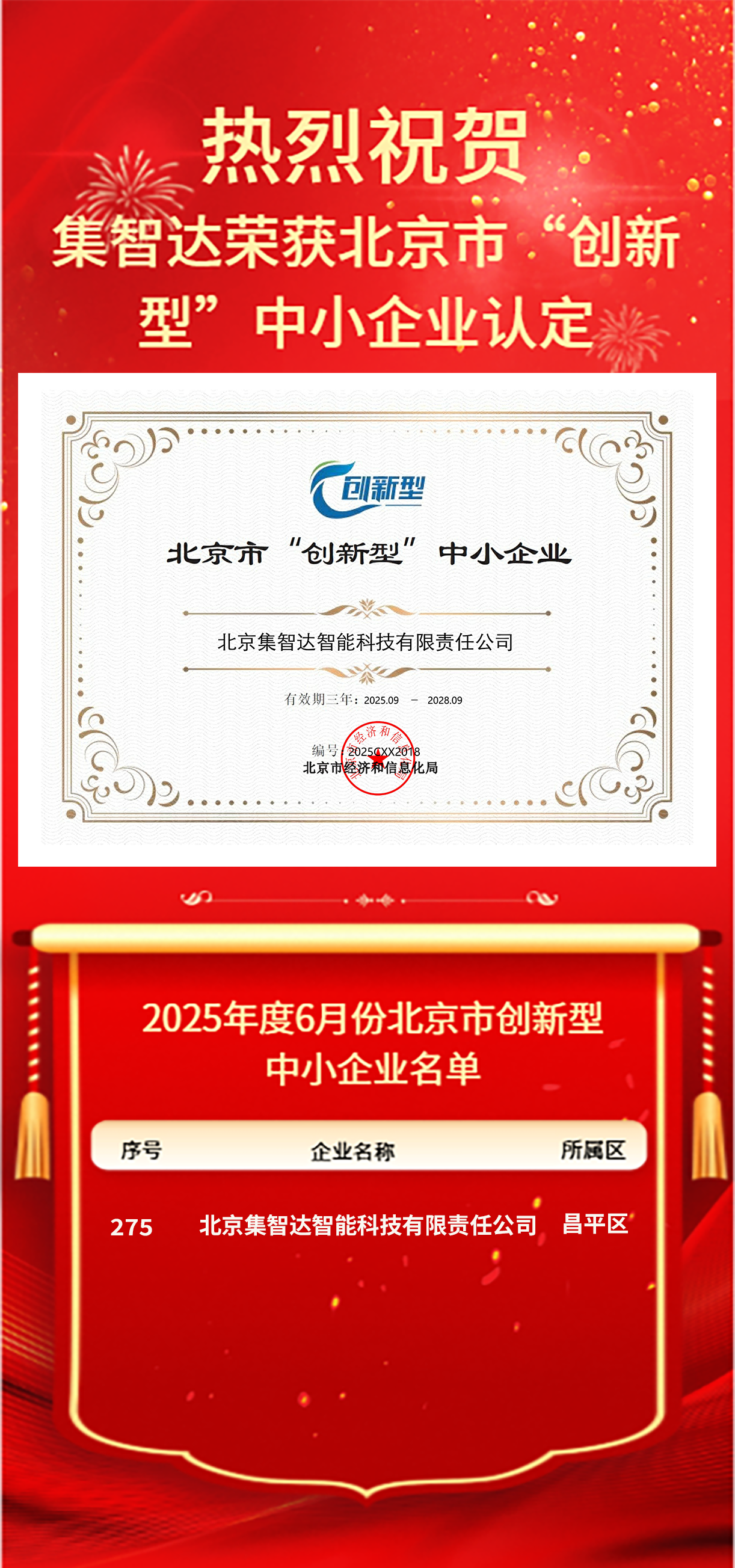 祝賀集智達(dá)榮獲北京市“創(chuàng)新型”中小企業(yè)認(rèn)定