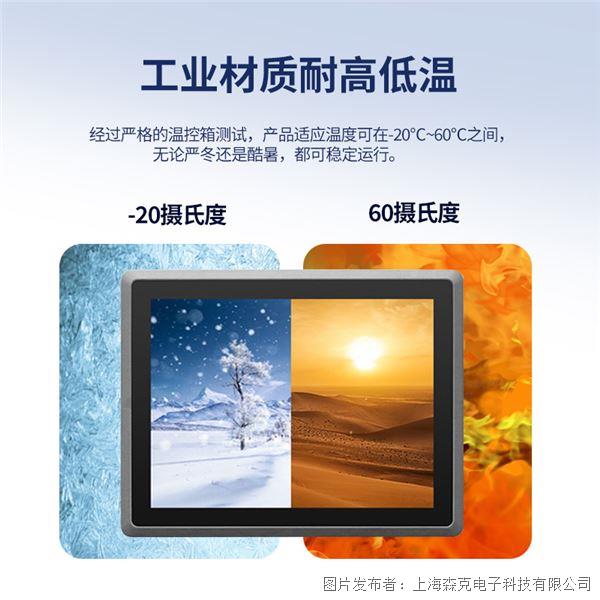 森克工業一體機,全封閉無風扇防塵設計,通過鋁合板與金屬后殼散熱,低噪音散熱效果,24小時穩定運行;國產操作系統、64位處理器、22納米制作工藝、CPU功耗10W;Ip65防水防塵,無縫隙全屏面板設計。